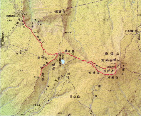 御浜小屋5:26 → 七五三掛6:08 → 大物忌神社7:50 → 新山8:15〜8:54 → 行者岳9:10