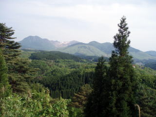 東に阿蘇山、北に双コブの由布岳、南に明日登る