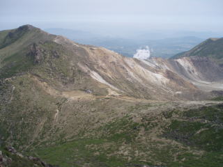 中央の茶色い所が硫黄岳である。