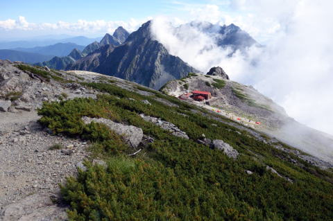 今日の宿泊地、南岳小屋幕営地が見えてきた。