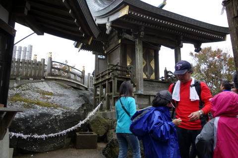 小雨が降っていたが、土曜日なので、多くの人で混雑していて、狭い山頂は順番待ち。