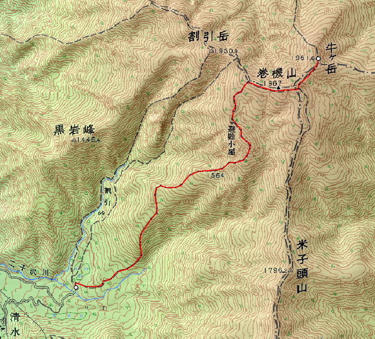 巻機山へは、いったん下り左の尾根伝いに登っていく。
